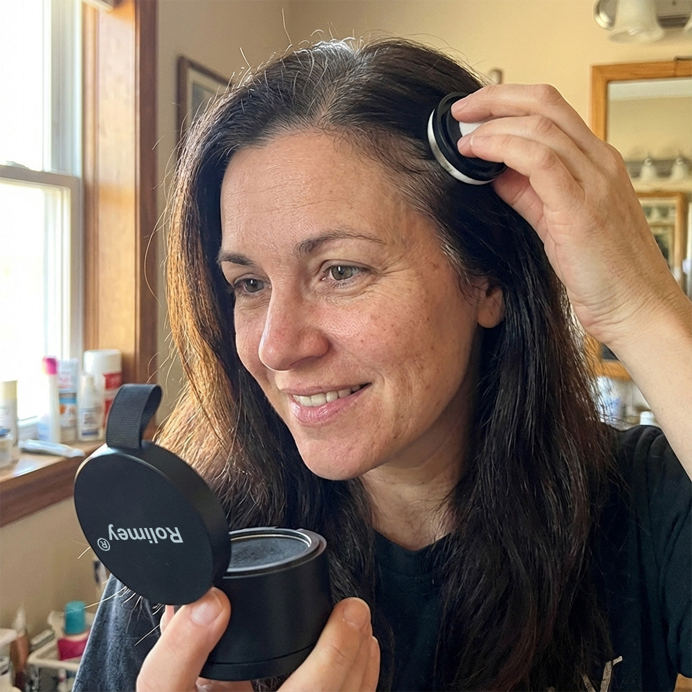 Rolimey® gibt Ihnen in Sekunden perfekt gleichmäßige Farbe, die sich so nahtlos in Ihr Haar einfügt, dass niemand den Unterschied zwischen Färben und einem schnellen Touch-up erkennt.